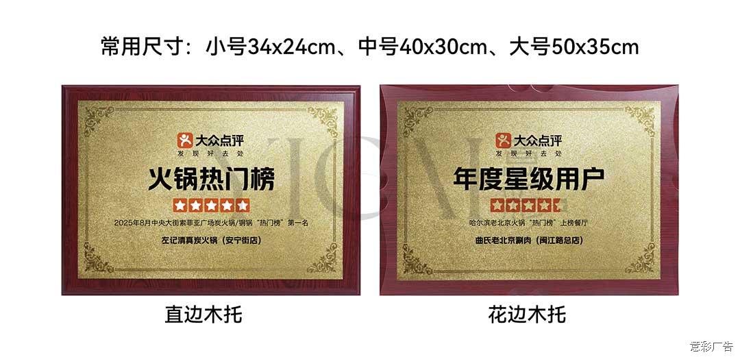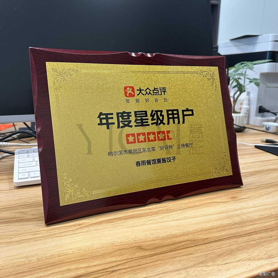 美团点评官方木质奖牌年度星级用户榜单授权牌