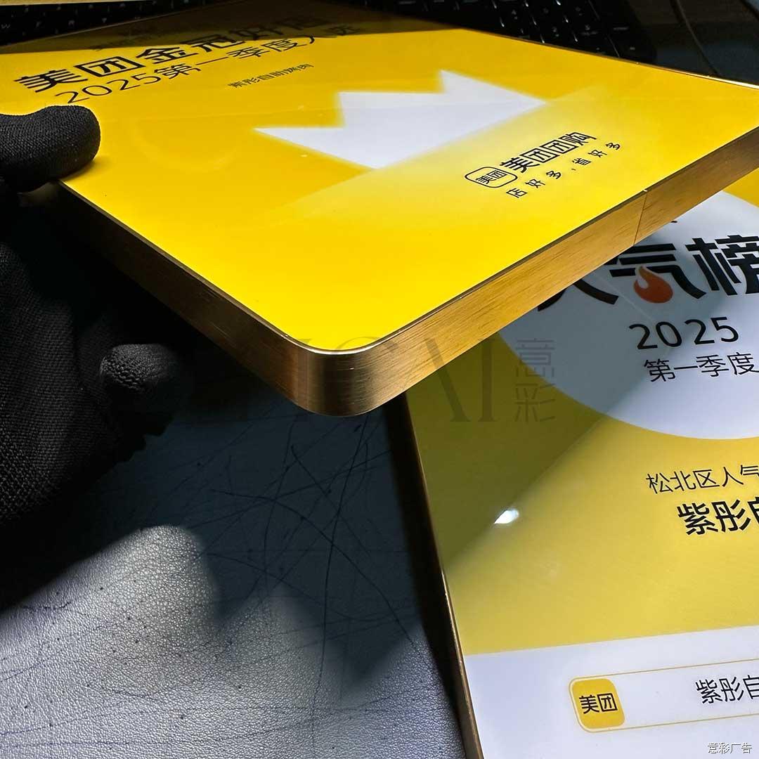 美团上榜餐厅 奖牌榜单授权牌 木质胡桃木纹理+铝塑板