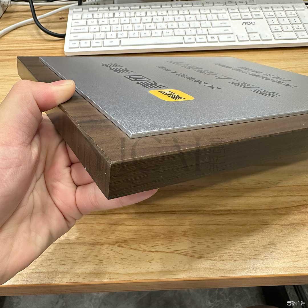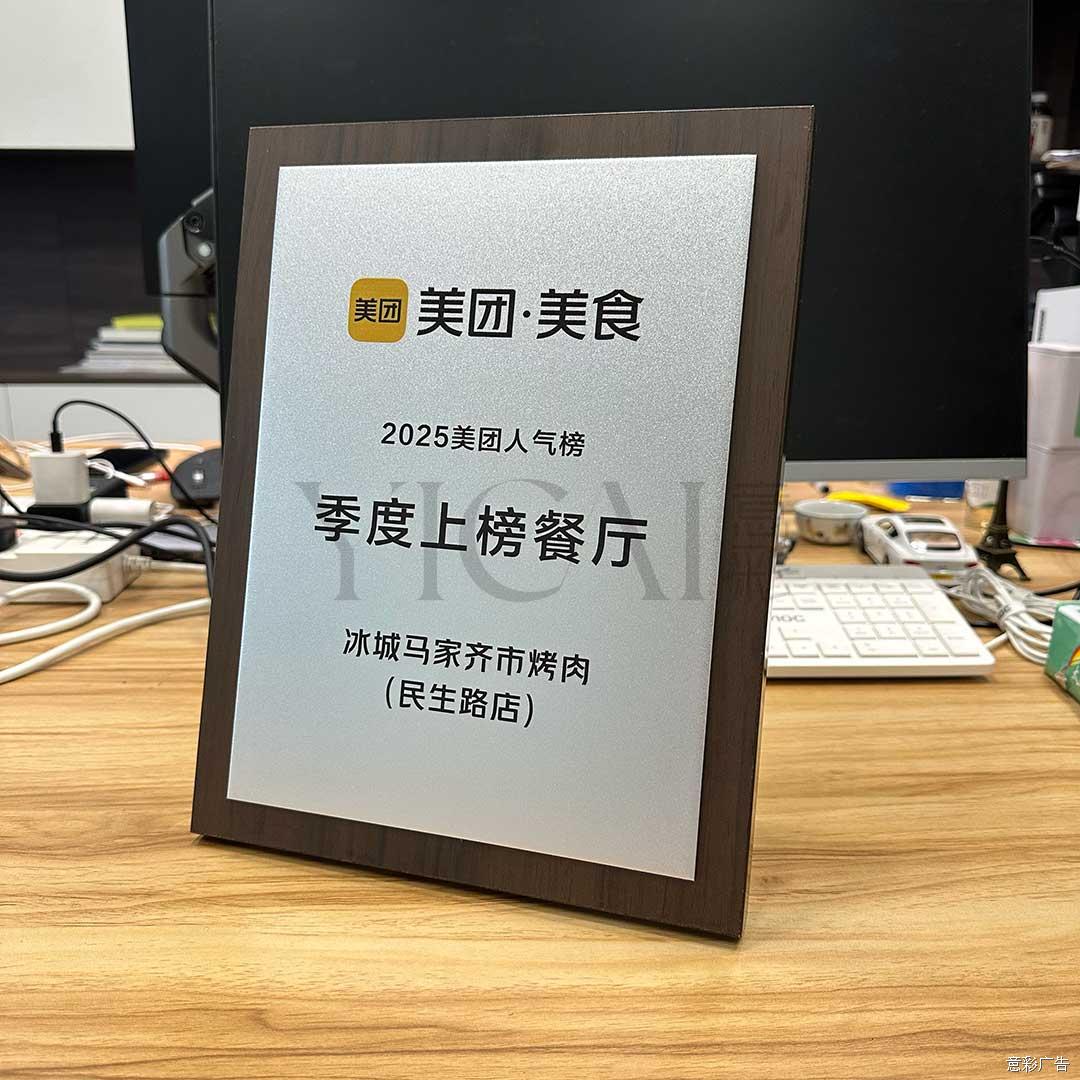 美团上榜餐厅 奖牌榜单授权牌 木质胡桃木纹理+铝塑板