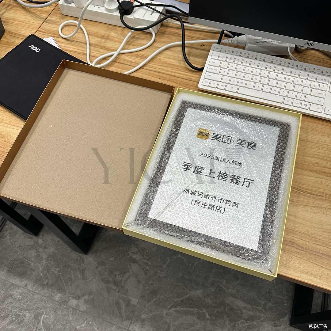 美团点评金冠好店榜单框画铝合金边钢化膜一体型画框奖牌榜单授权牌